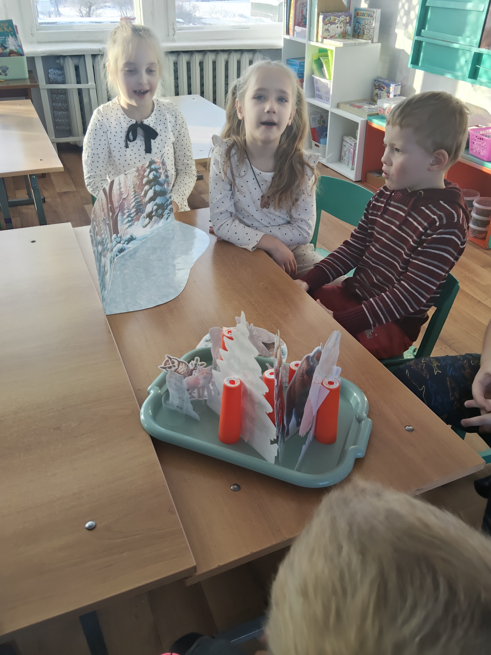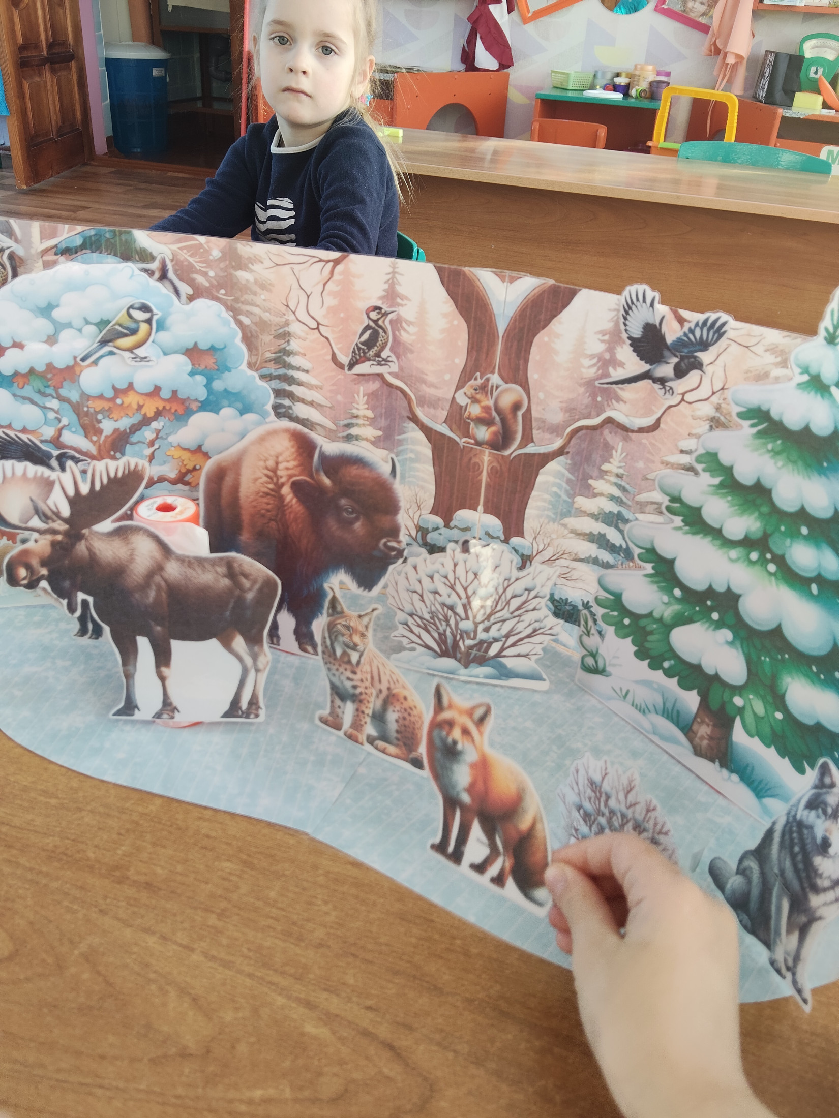 На прошедшем занятии в кружке «Капелька» воспитанники совместно с воспитателем создали макет зимнего леса, закрепив знания о жизни диких животных в зимний период.