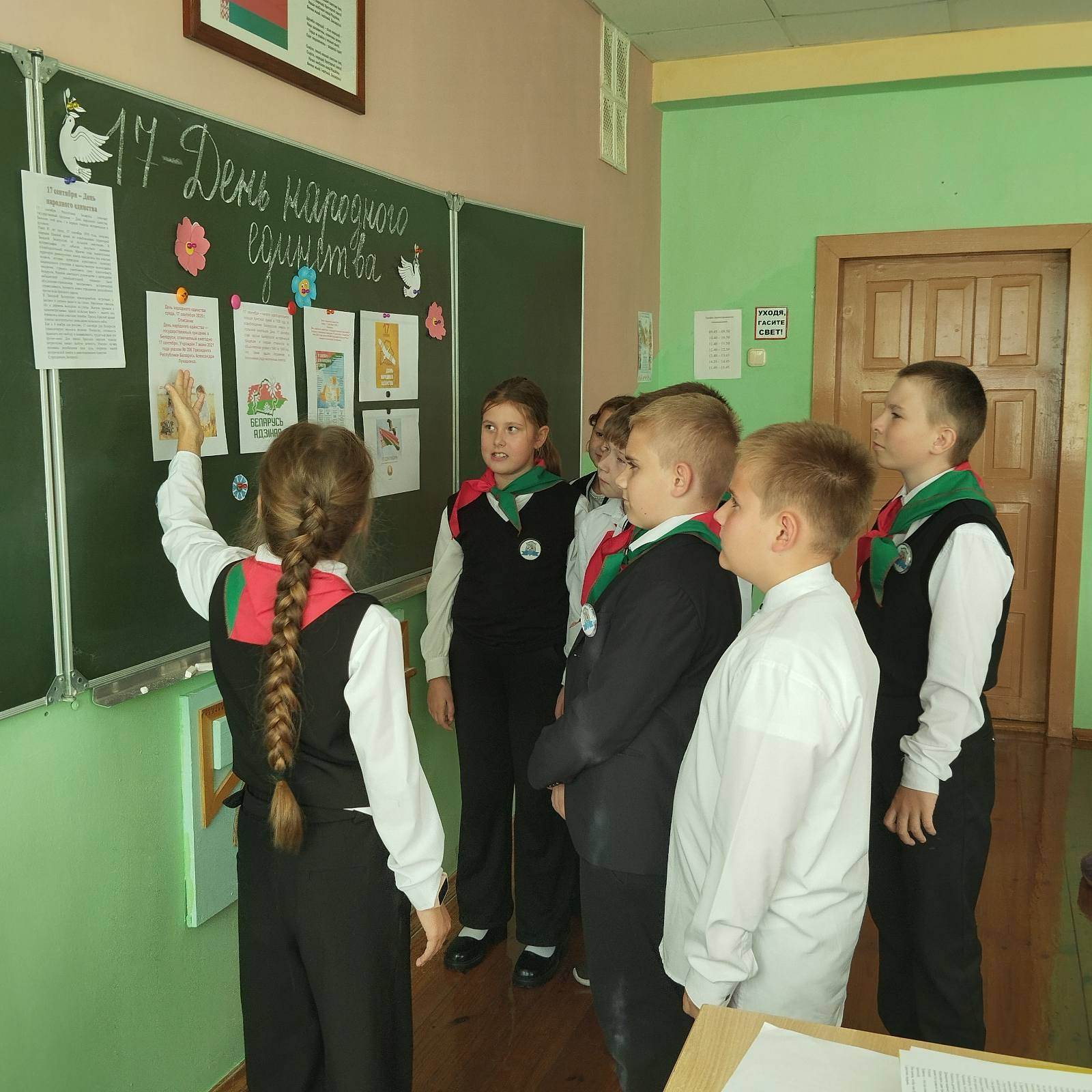 17.09.2025 состоялся единый урок, приуроченный к государственному празднику — Дню народного единства. Этот день, который мы отмечаем 17 сентября, символизирует историческую и неразрывную связь поколений, духовное единство нашего народа и общую судьбу на одной земле. Целью урока являлось углубление знаний учащихся об истории своей страны, формирование чувства патриотизма и гражданской ответственности, а также воспитание уважения к культурному и национальному многообразию Республики Беларусь. День народного единства — это не просто дата в календаре, а повод еще раз осознать, что вместе мы можем преодолеть любые трудности и построить процветающее будущее для нашей родной Беларуси.