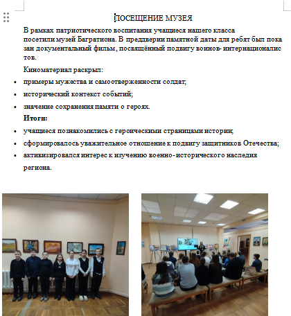 28.01.2026 с цель формирования патриотического сознания и культурно- исторической грамотности учащихся в актовом зале состоялся просмотр видеоролика о выдающихся местах и историко-культурных объектах нашей любимой Беларуси. В ходе просмотра видеоролика учащиеся познакомились с ключевыми историко‑культурными и природными объектами Республики Беларусь. В кадре были представлены: мемориальные комплексы (в т. ч. Брестская крепость); архитектурные памятники (Несвижский и Мирский замки, старинные костёлы и церкви); природные заповедники (Беловежская пуща, Нарочанский парк); города с богатым наследием (Полоцк, Гродно, Витебск, Минск). Видеоряд сопровождался краткими пояснениями о значении каждого объекта, его истории и роли в культуре страны. Просмотр видеоролика способствовал: формированию патриотизма: ребята увидели красоту и многообразие белорусской земли, осознали её историческое значение; развитию эстетического вкуса: архитектурные ансамбли и природные пейзажи вызвали живой интерес и восхищение; углублению краеведческих знаний: учащиеся узнали о памятниках, которые могут посетить лично; воспитанию бережного отношения к наследию: акцент на сохранении памятников и природы побудил задуматься о личной ответственности; сплочению коллектива: общее обсуждение после просмотра укрепило дружеские связи и умение слушать друг друга. Мероприятие достигло поставленных целей: учащиеся получили целостное представление о «славутых мясцінах» Беларуси; у ребят пробудился интерес к изучению родного края; сформировалось уважительное отношение к историческому и природному наследию страны.