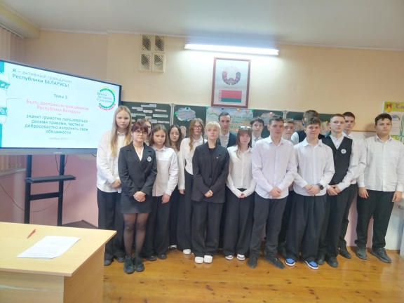 25.09.2025 учащиеся VIII класса приняли участие в мероприятии информационно-образовательного проекта «Школа активного гражданина» на тему «Быть достойным гражданином — значит быть преданным своей Родине».