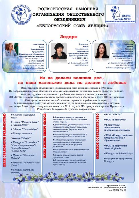 Список председателей областных организаций общественного объединения «Белорусский союз женщин»