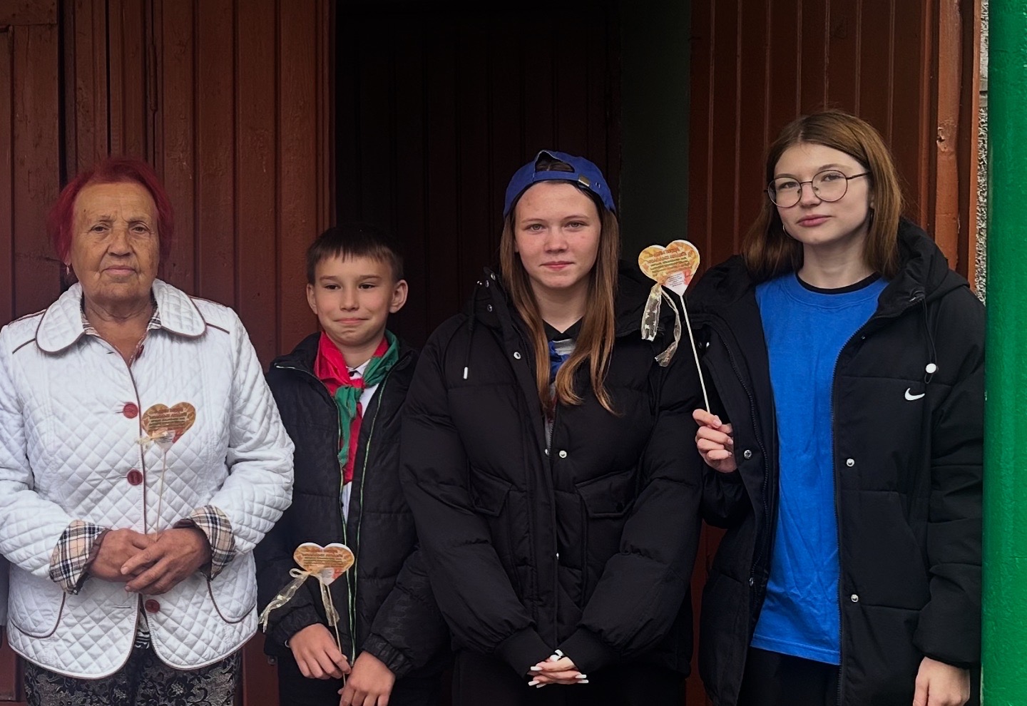 «Члены волонтерского и тимуровского отрядов Гнезновской средней школы посетили пожилых жителей, чтобы тепло и сердечно поздравить их с Днем пожилого человека. Ребята подготовили небольшие подарки, сделанные своими руками, и вручили их каждому. В ходе визитов школьники делились добрыми словами, желали крепкого здоровья, счастья, долголетия и, конечно же, как можно больше улыбок в каждом дне».
