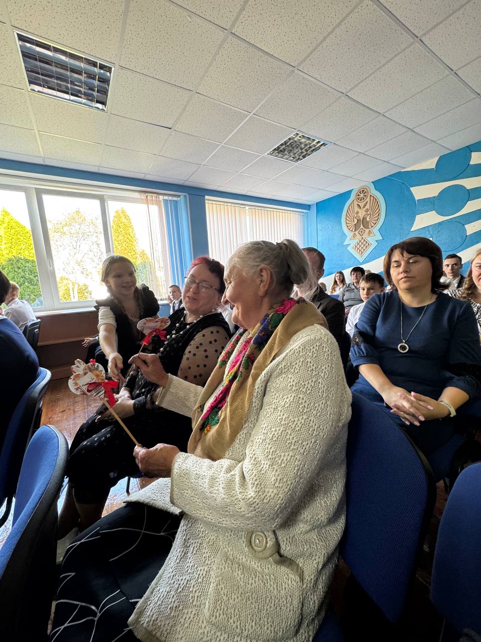 «В рамках концертной программы, посвященной Дню учителя, члены ОО "БРСМ" ГУО "Гнезновская средняя школа" вручили памятные подарки Нине Федоровне Лыдкиной, ветерану педагогического труда».