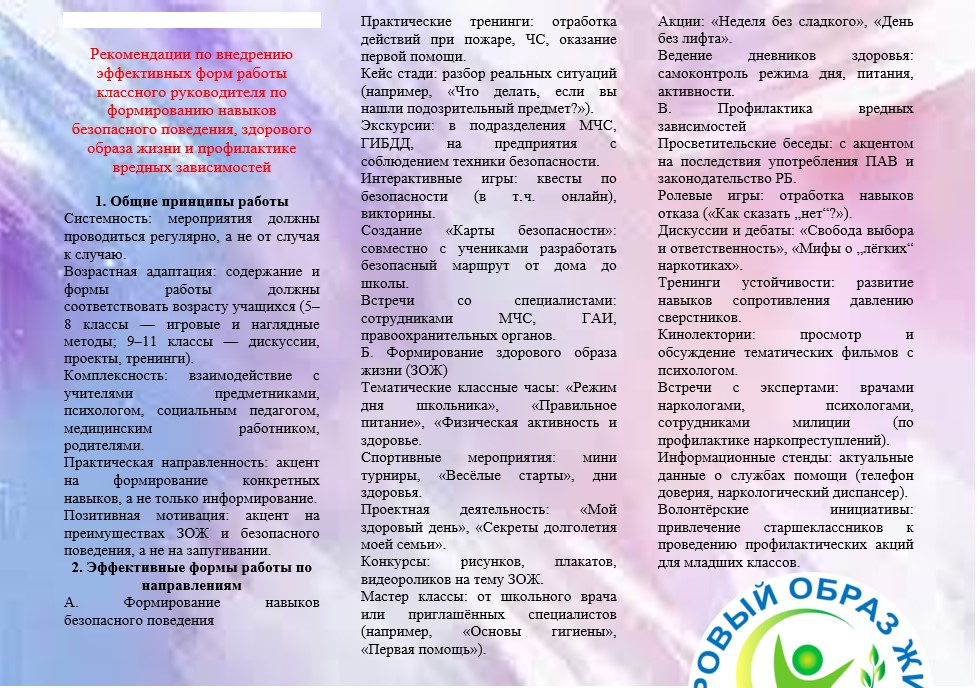 Заседание педагогов, выполняющих функции классного руководителя на методическом объединении по теме «Совершенствование форм работы классного руководителя по формированию навыков безопасного поведения, здорового образа жизни и профилактике вредных зависимостей»Выработка рекомендаций по внедрению эффективных форм работы классного руководителя по формированию навыков безопасного поведения, здорового образа жизни и профилактике вредных зависимостей.